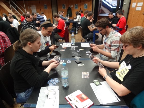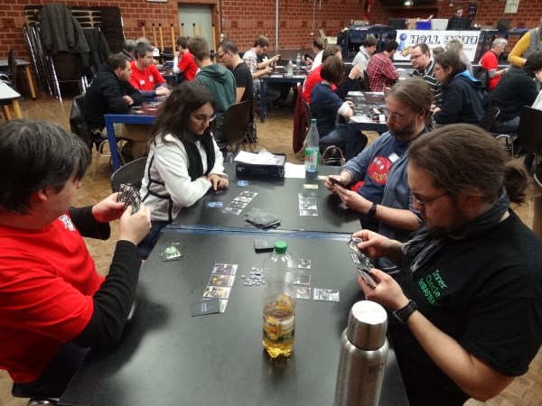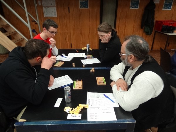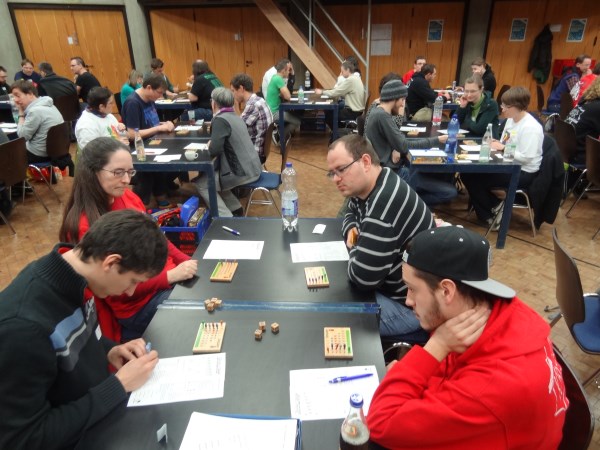 Naja... ruhig bis auf eine Ausnahme: Genau als ich diese Zeilen in den Bericht schrieb, wurde der ruhige Nachmittag durch einen Einbruch-Alarm unterbrochen. Die Alarmanlage wurde durch 5 Jugendliche ausgelöst, die sich in der Pause, während einige Spieler zum Rauchen vor die Tür gingen, Zutritt verschafften und durch einen gesicherten Ausgang das Gebäude wieder verlassen wollten. Zum Glück geschah dies in der Spielpause, so dass die Spiele dadurch nicht gestört wurden. Nach 5 Minuten Dauersirene konnte das durchdringende Signal beendet werden.