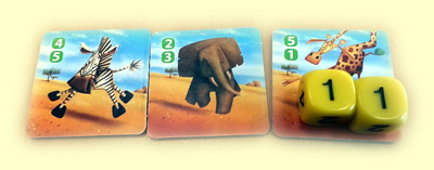 In dieser Wüste ist die Welt noch in Ordnung. Da gibt es keine Nahrungskette, nein, da treten Löwen, Zebras, Giraffen, Antilopen und Elefanten ganz harmonisch gegeneinander an. Zwei seiner Tiere muss man als Erster zum Wasserloch führen, indem man sie mit passenden Würfeln bestückt. Wer dabei aber zu gierig wird und zu viele Tiere bewegen will - oder ein Tier besonders weit - geht vielleicht nicht nur leer aus, sondern hilft unter Umständen sogar noch seinen Mitspielern.