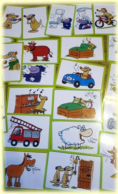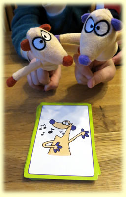 Das Spiel an sich ist schnell erklärt, und man kann rasch losspielen. Wie gut dann die Umsetzung der Karten in Geräusche klappt, die völlig beliebig mit Mund, Hand, Fuß oder Gegenstand erfolgen darf, hängt stark von der Kindergruppe ab. Leider habe ich öfter die Erfahrung gemacht, dass viele Dreijährige überfordert waren, während etwas ältere Kinder es besser schafften, die Geräusche nachzuahmen. Obwohl ausdrücklich in der Spielanleitung empfohlen wird, die Fingerpuppen in die Darstellung miteinzubeziehen, macht dieses leider bei vielen Karten kaum Sinn - wie soll man Jan/Henry denn benutzen, um die Geräusche von einem Frosch, Schaf, Wasserhahn etc. nachzuahmen?