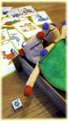 Der Spielablauf ist kleinkindgerecht einfach: Eine Karte wird gezogen und dann soll gerne auch mit Unterstützung von Jan oder Henry das Geräusch nachgeahmt werden. Wird es richtig geraten - passend für Kleinkinder dürfen es auch mehrere Rateversuche sein - gibt es zur Belohnung eines der 5 Bettteile. Danach wird der nächste Spieler der Vormacher. Sind alle 5 Teile vergeben, wird das Bett am besten mit Unterstützung eines Erwachsenen zusammengebaut und Jan & Henry darin platziert und zugedeckt.