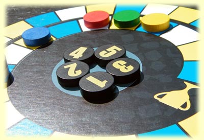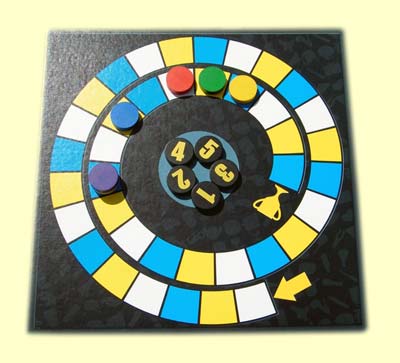 Der Spielplan zeigt einen spiralförmigen Weg mit drei unterschiedlich farbigen Feldern. In die Mitte werden Bonussteine gelegt, immer einer weniger als Mitspieler vorhanden sind. Die farblich unterschiedlichen Spielsteine kommen auf das Startfeld. Ich versuche, als Erster das Zielfeld zu erreichen, und wenn mir das gelingt, endet die aktuelle Partie. Leider auch dann, wenn mir ein anderer zuvorkommt.