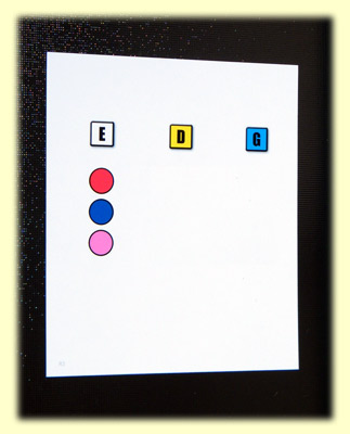 Dieses Spiel erfordert zwingend gute bis sehr gute Licht- und Sichtverhältnisse. Die Markierungstafeln sind leidlich klein geraten, und da auch noch hinter einem Sichtschirm die eigene Einschätzung darauf markiert werden muss, ist die in der obigen Abbildung klare Abgrenzung zwischen pink und rot, rot und orange, hellblau und grün und gerne auch gelb und orange nichts für "unter Tage", wie man es bei uns im Pott zu formulieren nicht müde wird.