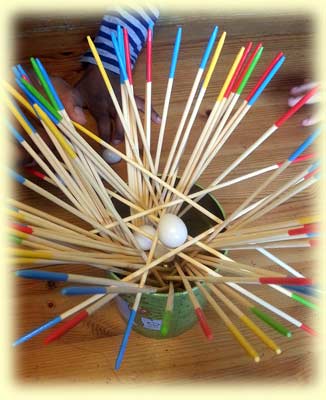 Wirklich schade daran ist, dass Zum Kuckuck eigentlich viele tolle Ansätze hat. Geschicklichkeit gepaart mit ein bisschen zocken, eine ruhige Hand haben ... dazu noch das Nest. Das sieht immer toller aus, je mehr Stäbe verbaut wurden, und es kommt wirklich ein Nestbaugefühl am Tisch auf. Das ist eigentlich genau das, was ein gutes Kinderspiel ausmacht. Aber, wie oben schon erwähnt: Für Kinder in diesem Alter ist das nicht zu beherrschen. Und selbst für ältere Kinder.