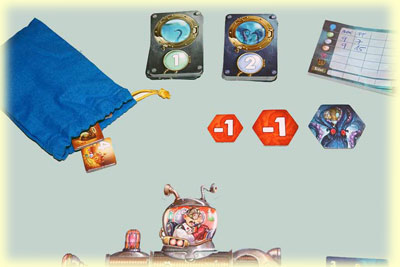 Nach fünf Runden mit wechselndem Startspieler endet ein Durchgang. Nun werden die Punkte notiert: 2 Punkte pro unterschiedlichem Fisch, der im Aquarium unseres U-Boots Platz findet, sowie eventuelle Punkte für einen verbesserten Antrieb (2 oder 5 Punkte). Der Spieler mit den meisten Krakenaugen muss allerdings noch Minuspunkte eines zufällig aufgedeckten Krakenplättchens in Kauf nehmen.