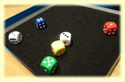 Der gemeinsame Spielplan und die Holzsteine machen das Zweipersonenspiel wertiger als Ursprungsspiel mit Block und Stift. Auch die Idee, den Deckel des Spiels mit einer dünnen Schaumstoffmatte zu beziehen und so ein Würfelfeld entstehen zu lassen, das ein lautloses Würfeln ermöglicht, finde ich prima!