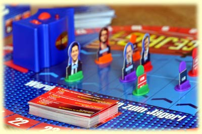 Die Schwierigkeit der Fragen ist sehr unterschiedlich. Das ist in gewissem Grad bei den meisten Quizspielen so, ebenso wie in der TV-Sendung. Allerdings: wenn man schon die Karten zweiseitig bedruckt, wäre es ein Leichtes gewesen, vorne und hinten unterschiedliche Farben zu drucken und die Fragen in leichte und schwere zu unterteilen. Somit hätte man das Spiel auch gut dem Alter und Wissensgrad der Spieler anpassen können und zugleich die Ausgewogenheit der Fragen (innerhalb einer Schwierigkeitsstufe) automatisch deutlich erhöht. So wie das Spiel konzipiert wurde, ist für geübte Quizzer die zweite Phase aufgrund der zu "dumm" geratenen Jäger tendenziell schon zu leicht, während für junge Kinder (offiziell ist das Spiel ab 8 Jahren) die Fragen größtenteils viel zu schwer sind. Hier wurde leichtfertig eine Chance, das Spiel zu verbessern, verpasst.