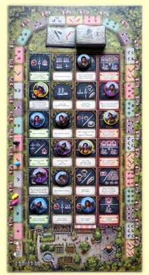 Schön ist, dass das Spielbrett an die Spielerzahl angepasst werden kann. So hat man im Solo- oder 2er-Spiel 12 Aktionsfelder zur Verfügung, im 3er-Spiel 20 und im 4er-Spiel 24 Aktionsfelder. Sinnvoll ist auch, dass besonders markierte Aktionsfelder einer Spalte von ein und demselben Spieler in einer Runde nur einmalig genutzt werden können. Gerade beim Spiel zu zweit kann hier der Zug des Gegenübers besser geplant werden.