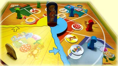 In Moritz' Kinderzimmer sieht es wieder aus ... halt wie in jedem Kinderzimmer irgendwie. Deshalb kommen zu Spielbeginn auch erst mal Spielsachen auf den Boden bzw. den Plan. Manche Chips liegen offen, manche verdeckt. Diese Chips müssen die Kinder mit ihren Koboldbanden klauen, denn je nachdem, was das für Spielzeug ist, gibt es Punkte am Ende des Spieles.