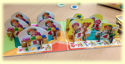 Das fühlt sich schon fast wie ein Familienspiel an, aber das ist es nicht. Es ist ein Kinderspiel und ein sehr spannendes dazu. Die Zielgruppe der 6-Jährigen braucht aber meist ein Spiel, um zu begreifen, was die Kobolde da alles machen und wieso sie was sammeln. Die ersten Runden verlaufen auch eher schleppend (vielleicht sogar die ganze erste Partie), weil die Kinder noch nicht erkennen, wie nützlich es sein kann, mehrere Kobolde ins Spiel zu bringen. Sie setzen einen rein und beim nächsten Zug holen sie ihn wieder raus und klauen etwas. Dadurch füllen sich die Chips nur spärlich auf, was ja eine der beiden Endbedingungen ist.