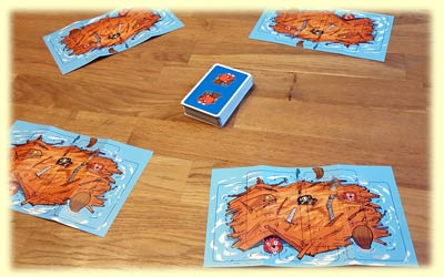 Der Aufbau von BiberClan ist flott - jeder Mitspieler erhält eine Biberburg, alle Karten werden gemischt und schon kann gestartet werden.