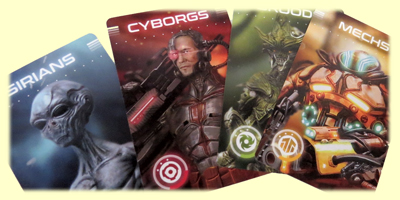 Die eigentliche Spielidee ist wie bei allen bisher erschienenen rudy games simpel. Im Grunde genommen handelt es sich um eine rundenbasierte Ligretto-Mau Mau-Variante, die in den Weltraum gebeamt wird. Karten in vier Farben mit den Werten 1 bis 4 dürfen auf- und absteigend auf maximal acht Stapel gelegt werden, die stets mit der niedrigsten Zahl eröffnet werden müssen. Sobald Karten mit dem Wert 4 ausliegen, darf mit einem Raumschiff der Stapel evakuiert werden. Vier Einer-Karten in den vier Farben liegen zu Beginn aus. Jeder besitzt sechs Handkarten und eine den Farben zugeordnete Charakterkarte, die eine Spezialfunktion beinhaltet. So haben die blauen Sirians stets sieben statt sechs Handkarten zur Verfügung. Noch gewichtiger, meines Erachtens nicht ausbalanciert zu stark, sind die Cyborgs, die schon nach der dritten Stufe evakuieren können. Am Ende zählt jedes Raumschiff, das man zur Evakuierung nutzen konnte, fünf Siegpunkte, alle Farbkarten werden den entsprechenden Spielern zugeordnet und mit der jeweiligen Zahl gewertet.