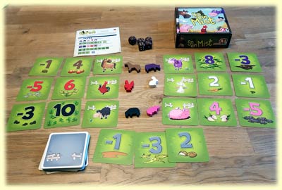 Bis zu sechs tierische Figuren (Hahn, Hase, Kuh, Pferd, Schaf und Schwein), die jeweils eine Farbe besitzen, können in So ein Mist ausgewählt werden. Passend zum eigenen Tier erhält man Wegkarten, die durch die eigene Tierfarbe erkannt werden können und entweder passendes Futter (Pluspunkte) oder aber entsprechende Ausscheidungen (Minuspunkte) zeigen. Mit je einer Wegkarte pro Tier sowie 6 Startkarten wird anfangs ein zufälliger Rundweg ausgelegt. Außerdem werden je nach Spieleranzahl 0, 1 oder sogar 2 Karten als Wertungskarten an den Nachbarn gegeben; diese Wertungskarten und später alle gewonnenden Karten werden unter die eigene Tierkarte gelegt und am Spielende ausgezählt.