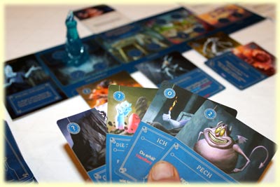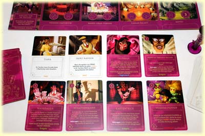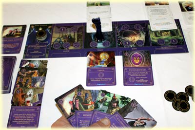 Die Schicksal-Karten greifen bei ihm an beiden Fronten an, denn einige Helden lassen den Talisman die Seite wechseln, andere Karten stopfen den Wahrsage-Stapel mit unnützen, manchmal auch richtig lästigen Karten voll. Dr. Facilier ist also ständig bemüht, seine bösen Geister und Handlanger einzusetzen, um die Chancen auf eine erfolgreiche Prophezeiung hoch zu halten. Ebenfalls eine knifflige Angelegenheit, die neben ein bisschen Glück aufmerksames und taktisch geschicktes Spiel erfordert.