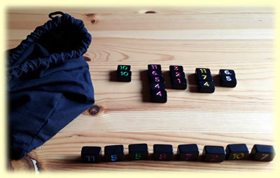 Zu Beginn zieht jeder Spieler 8 Steine aus dem Beutel – bei Nichtgefallen darf er beliebig viele davon einmalig austauschen. Es gibt Steine mit den Zahlen von 1 bis 11 je zweimal in jeder der sechs Farben. Die gewählten Steine stellt jeder vor sich auf, so dass sie die Mitspieler nicht sehen können.