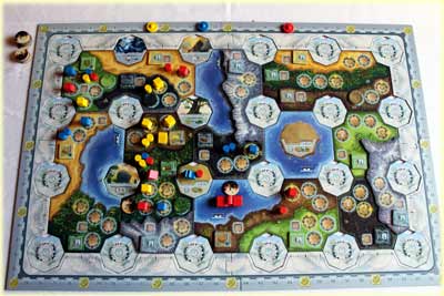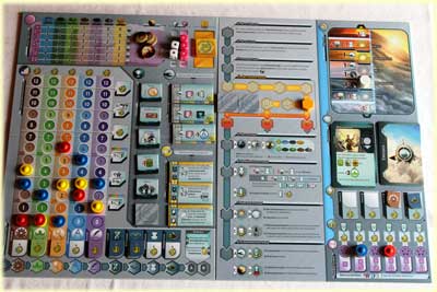 Der Spielablauf ist genau strukturiert und wird mit einem Marker auf dem allgemeinen Spielplan festgehalten. Jede der vier Epochen beginnt mit dem Aufdecken neuer Karten (Phase 1). Vor allem erfahren wir dadurch, welches Ereignis uns am Ende der Epoche erwartet. In Phase 2 dürfen wir uns eine neue Zielplatine wählen, die uns bei Erfüllung der angegebenen Bedingung im späteren Spielverlauf einen Vorteil bringen kann. In Phase 3 schließlich erhalten wir in beliebiges Gut aus einer der Gebietsarten, in der wir aktuell mindestens einen Stamm haben ("Sonderfund").