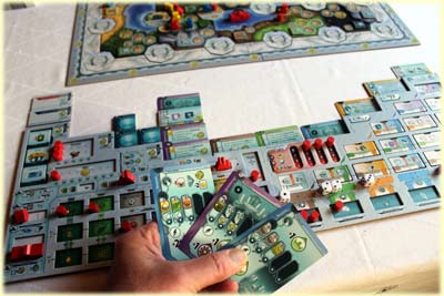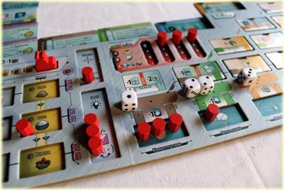 Jetzt könnte man einwenden, dass der übermäßige Einsatz von Würfeln ja einem Strategiespiel widerspräche. Und tatsächlich: Ein Glücksfaktor ist natürlich vorhanden. Es gibt zwar viele Möglichkeiten, Würfel zu manipulieren, alternative Aktionen durchzuführen, um dem Zufall ein Schnippchen zu schlagen, aber wer wiederholt nur unpassende Würfel wirft, wird dann doch etwas zurückgeworfen, weil er unnötige Aktionen zur "Reparatur" benötigt. Im Normalfall wird sich jedoch der geschickteste Taktierer, der bessere Stratege durchsetzen.