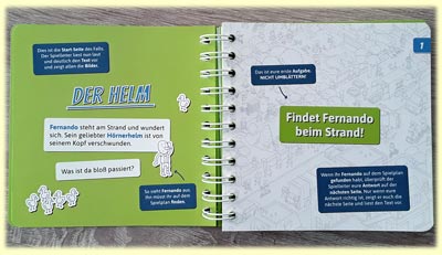 Das Spiel wird für 1 bis 4 Spieler empfohlen, was bei uns auch gut funktionierte. Ein kleiner Nachteil im Solo-Spiel ist, dass der Spieler im Falle einer falschen Lösung das richtige Ergebnis beim Weiterblättern direkt sieht, sodass die Aufgabe dann nicht noch einmal eigenständig gelöst werden kann, sodass wir es ab zwei Personen etwas schöner fanden, wenn mindestens noch ein Spieler eigenständig auf die richtige Lösung kommen kann. Bei drei oder vier Spielern müssen die Spieler sich etwas absprechen, damit sie sich nicht gegenseitig beim Suchen stören und in die Quere kommen, was bei uns das ein oder andere Mal passierte. Auch wenn das Spiel kooperativ ist, kann der gemeinschaftliche Gedanke gerade unter Kindern schon einmal in den Hintergrund rücken und der Gedanke „ich will die Lösung aber zuerst finden“ das Spiel etwas überlagern. Gerade zwischen Geschwistern, die gerne mal untereinander konkurrieren, kein seltenes Phänomen.