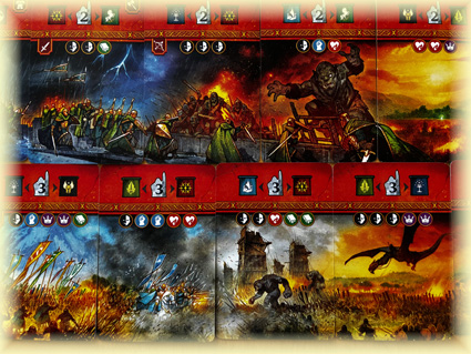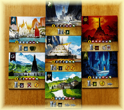 Mein Tipp: Von der Jagd auf den Ring würde ich abraten. Zumindest in meinen Spielen hat dies noch nie eine ernsthafte Rolle gespielt. 14 Schritte sind dazu notwendig – das bedeutet sehr viele Karten mit diesem Symbol zu nehmen. Da die Karten auch noch passende Fähigkeiten verlangen, dürfte man fast nur Fähigkeits- und Ringkarten nehmen. Das mag theoretisch funktionieren, wird aber fast immer auf eine militärische Niederlage hinauslaufen.
