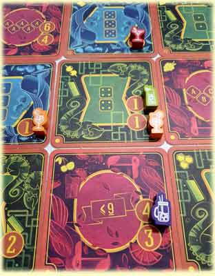 5 Augen: Wende irgendeinen Untersetzer auf seine andere Seite. Evtl. darauf befindliche Marker kommen zurück zu ihren Besitzern, die aber keine Punkte verlieren.
