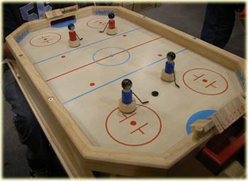 Die Eishockey-Figuren besitzen seitlich einen Schläger, der durch schnelles Drehen der Spielfiguren den Puck (eine flache Scheibe) über dass Spielfeld befördern soll. Damit der Puck den entsprechenden Drive bekommt und wie auf Eis gleitet, wird die Spielfläche zuvor eingepudert.