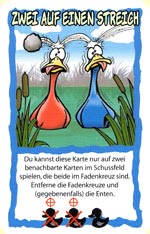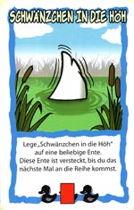 20.11.06 von Hilko Drude - Ja ja, ich weiß, völlig unstrategisch... macht aber trotzdem Laune. Übrigens auch zu zweit prima spielbar (12 Enten pro SpielerIn, ansonsten alles wie gehabt). |