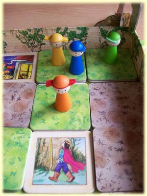 Anfangs funktioniert das Auffinden zusammengehöriger Märchenteile eigentlich recht gut, aber je mehr Paare bereits gefunden wurden, desto schwieriger wird es. Zumindest, wenn jeder seinen eigenen Spielzug alleine durchführt. Dies ist nämlich ein Punkt, der in der Spielregel nicht ganz eindeutig formuliert wurde. Es handelt sich zwar um ein Gemeinschaftsspiel, bei dem alle dasselbe Ziel erreichen wollen, sich also gegenseitig nicht behindern; aber beinhaltet dies auch, dass man sich während der Spielzüge Tipps geben darf, wo die jeweils gesuchte zweite Bildkarte versteckt ist?