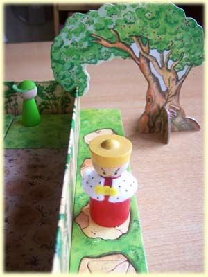 Für ältere Spieler, die beim Auffinden der Märchenbuchseiten schon sehr flott unterwegs sind, kann man auch mit der Variante spielen, dass der König von Anfang an mit seinem Spaziergang um den Schlossgarten beginnt. Allerdings muss man sich dann wirklich sehr anstrengen, um zu gewinnen.