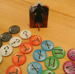 Nun schaut jeder Spieler was er noch vor sich liegen hat. Für jedes farbige Siegel bekommt er 2 Minuspunkte. Jedes Schwarze zählt minus 3 und die Joker sogar minus 4.