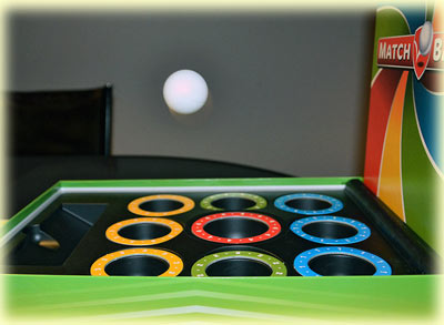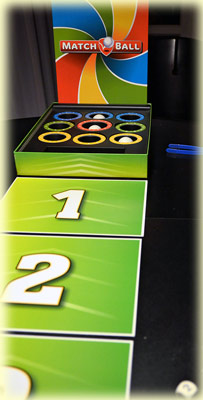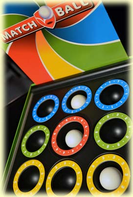 Bei Matchball handelt es um ein Geschicklichkeitsspiel, genauer gesagt um ein Wurfspiel. Die drei Tischtennisball-ähnlichen Wurfobjekte müssen in runden Mulden untergebracht werden, die mit Punktwerten von 1 bis 4 gekennzeichnet sind. So weit, so gut und bewährt.