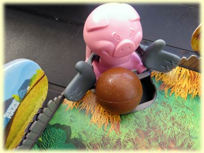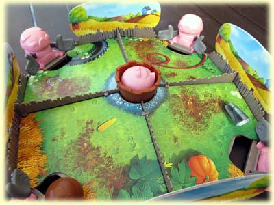 Die Ferkel bewerfen sich gegenseitig mit einem Matschball. Die anderen zu treffen ist lustig, aber viel wichtiger ist es, den Matsch schnell wegzuwerfen (auf den Kopf seines Schweins drücken), um nicht damit erwischt zu werden, wenn Mama aus der Badewanne kommt. Denn dann heißt es wieder einmal geputzt zu werden, iiihhhh!