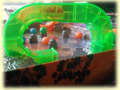 ... bis die Kakerlake wieder aus einem der Loopings in den Hof schießt. Jetzt müssen alle warten, bis sich die Kakerlake im Hof ausgetobt hat und wieder in einem Looping nach unten verschwindet.