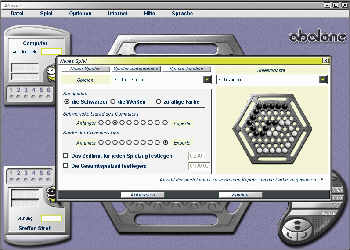 Einmal im Spiel, dürfen vor dem Start diverse Grundeinstellungen vorgenommen werden. Die Wahl von Spielername und –farbe ist dabei Routine, interessanter die Beschränkung der Zeit für Spielzug und Gesamtspiel, vergleichbar einer Schachuhr. Auch die Spielstärke des Computergegners kann in stolzen 10 Stufen eingestellt werden, gleiches gilt für das Niveau der Spielhilfe. Als letztes kann aus einem großen Fundus von Startaufstellungs-Varianten für die Spielkugeln gewählt werden (dazu später mehr).
