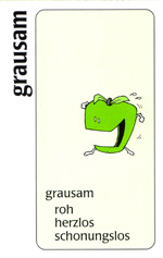 07.06.06 von Martin Berganski - Erst durch die Zeitbegrenzung kommen orginelle Begriffkombinationen zustande. Allerdings sollte jeder Spieler 2-3 Sekunden Zeit bekommen um eine Karte zu spielen, ansonsten werden irgendwelche Karten gespielt. |