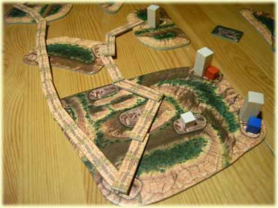 Soviel zur Wertung - aber wie kommt man an die Schätze? Beginnend vom äusseren Mesa-Ring starten nun 6 Expeditionen, die allen Spielern offenstehen. Um an einer solchen teilzunehmen, legt man einen Steg zunächst an das Startfeld der Expedition an. Alle weiteren Züge dieser Expedition müssen an den jeweils vorigen anknüpfen. Verzweigungen sind nicht möglich. Im eigenen Zug darf ein Spieler zwei Mal tätig werden, indem er an Expeditionen teilnimmt oder ein Camp baut. Letzteres hat zweierlei Vorteile: Zum einen darf man sofort nach Errichtung eines Camps unter einen beliebigen Wohnturm schauen. Zum anderen darf man einen Schatz bei einem Mitspieler stehlen, sobald man in einem späteren Spielzug ein eigenes Camp mit einer Expedition erreicht.