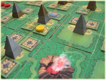 Jeder König legt den Grundstein für seine Zivilisation, indem er auf einem fruchtbaren Gebiet die ersten Gebäude errichtet. Zunächst werden Dörfer gebaut, da nur diese eine Produktion ermöglichen, und natürlich ein Palast, denn dort müssen die Maya Steuern in Form von produzierten Reichtümern zahlen. Sobald der König nun über eine feste Einkommensquelle verfügt, hat er die Möglichkeit, in neue Gebäude zu investieren und die Entwicklung seiner Zivilisation voranzutreiben. Nach und nach können seine Maya somit weitere Gebiete im Wald erschließen. Ein ruhiges, beschauliches Leben, vorausschaubar und ohne nennenswerte Höhepunkte. Dem ist aber nicht so ...
