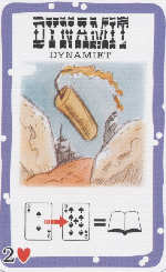 Die Symbole auf den Aktionskarten sind auf einer Übersichtskarte zusammengefasst. Zusätzlich gibt es 6 Sonderkarten die durch das Symbol eines Buches zu erkennen sind. Diese Karten sollten vor Spiel einmal aus den Regeln vorgelesen werden.