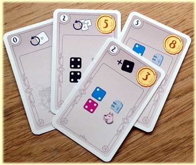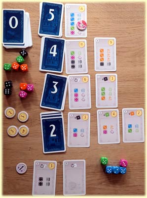 30.07.25 von Günter Berberich - Würfelspiel über genau 7 Runden. Was mir gut gefällt ist das, wenn man die gewünschte Beutekarte nicht erwürfelt, man trotzdem eine 0er-Beutekarte erhält und nicht leer ausgeht. Man kann am Anfang auch absichtlich zurückhaltender spielen und vermeintlich leichtere Beutekarten wählen, um nicht in der kommenden Runde 1. zu sein und weniger Vorteile zu haben. Die Verteilung der Reihenfolgechips ist etwas gewöhnungsbedürftig und man braucht eine Runde um reinzukommen. In meinen Runden als Einstieg gut angekommen. |
