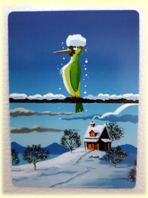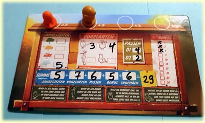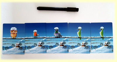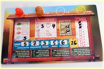 16.09.25 von Roland Winner - Hingucker: Hübsche Karten mit süßen Vogelillustrationen. Ablauf: Wir sammeln uns jeweils ein Wertungs-Deck aus Vogelkarten in 4 Arten und landschaftlich in 4 Jahreszeiten vorkommend. 2-mal im Spiel bildet man eine lange Reihe aus seinem Wertungs-Deck, ohne die Reihenfolge zu ändern. Nun müssen daraus Sets aus nebeneinander liegenden Karten gebildet werden. Entweder hat ein Set mind. 2-mal die selbe Vogelart ODER die selbe Jahreszeit. Jede Karte im Set ist 1 Punkt. So können in einer Partie max. 8 Sets gewertet werden. Ergänzend kommen Bonuspunkte dazu, je mehr Wertungen man gemacht hat und für die meisten Set-Karten in jeder Vogelart. - Kurzweilige Unterhaltung. - 4 süße Miniatur-Vögel liegen auch noch in der Schachtel. |