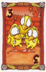 Ein gewisser Spannungsbogen über die Partie hinweg ist dadurch gewährleistet: Die Höhe der Gebote nimmt zu. Glück hat also der Auktionator, der mit seinem Gebot die Begehrlichkeiten der Mitspieler anheizen und somit eine hohe Bezahlung durch Küken erzielen kann - oder der es schafft, ein Gebot mickrig aussehen zu lassen, um es selbst einzukassieren und somit billig seine eigene Auslage aufzuwerten. Letzteres klappt leider meist nicht - bei zu billigem Startgebot wird fast immer ein Mitspieler neugierig und überbietet den Auktionator ...