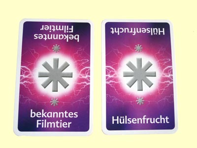 Bei diesem Spiel geht es darum, blitzschnell auf die Karten der Mitspieler zu reagieren, wenn deren Karten dasselbe Symbol zeigen wie die eigene Karte. Dabei muss man immer ein passendes Wort zur Begrifflichkeit der Mitspielerkarte finden, z. B. würde also die Antwort "Auto" zum Begriff "Fahrzeug" passen.