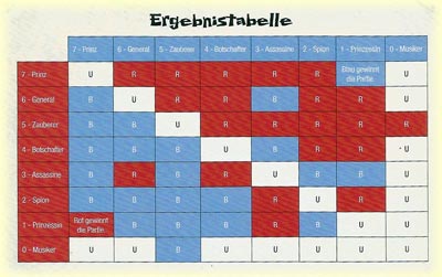 Ich habe verschiedene Personenkarten auf der Hand, muss eine für die aktuelle Runde auswählen und hoffen, dass mit ihrer Aktion das Richtige geschieht? Das kenne ich doch schon von ... ach ja, da steht es ja auf der Schachtel: "Vom Autor von Love Letter". Aber das ist auch zu zweit spielbar. Was also hat er hier anders gemacht?