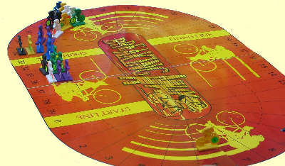 Die Spieler führen je ein Team aus 4 Radfahrern über einen 100 Felder langen Kurs. Dieser erinnert mit seiner ovalen Form zwar eher an die Austragungsorte spannender 6-Tage-Rennen, soll aber ein Strassenrennen simulieren. Da kein Sportler dem zweiten gleicht, kommen auch in Breaking away die Fahrer mit eigenen Fähigkeiten daher. Dazu gibt es zu jedem Team einen Teamzettel, auf dem jeder Spieler zu Beginn für seine Fahrer Stärkepunkte auf je 3 bis 4 Spalten verteilt. Diese Anzahl ist für alle Spieler gleich, aber bei den 4 Fahrern unterschiedlich. So stehen dem jeweiligen Fahrer mit der Nr. 1 satte 30 Punkte zur Verfügung, für jeden Fahrer mit der Nr. 4 nur noch deren 16. Diese dürfen beliebig auf die Spalten des Fahrers verteilt werden, mit der Einschränkung, dass kein Wert über 15 sein darf - unsere Radfahrer gehen nicht gedopt an den Start.