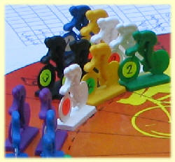 Zu dritt sollte man mit 2 Teams pro Spieler fahren, da sonst zu wenig Radfahrer auf der Strecke sind - besser ist jedoch das Spiel mit 4 oder mehr Spielern.