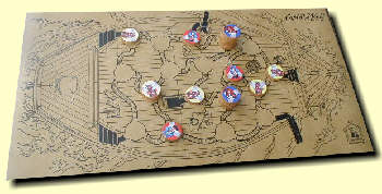 Stechen wir also mit Capt'n W. Kidd in See. Schon sichten wir ein Schiff - es ist die Loyal Captain (= erstes 2-Personen-Spiel dieser Sammlung), die Kidd nicht angreifen möchte. Die erste Meuterei wird gestartet, alle belauern sich gegenseitig. Ziel ist es, möglichst viele der 7 Steine des Gegners zu umzingeln. Man darf entweder eine Figur neu einsetzen, oder eine bereits meuternde Figur um ein Feld bewegen. Umzingelt man mit der Bewegung eine oder mehrere gegnerische Figuren und macht sie so bewegungsunfähig, darf man diese vom Spielfeld nehmen. Die Meuterei endet, sobald ein Spieler keinen Zug mehr machen kann, oder die Spieler sich nicht mehr bedrohen können und mit einem Unentschieden wieder vertragen.