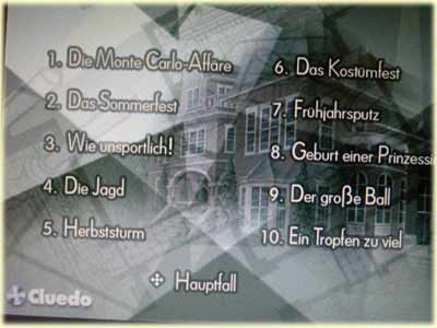 Der Unterschied zwischen den 10 Standardfällen und dem variable Hauptfall besteht darin, dass der Hauptfall im Großen und Ganzen dem Original Cluedo-Spiel entspricht, da die DVD hier die Lösung nicht kennt. Daher gibt es auch keine Tipps vom Butler oder dem Kommissar.