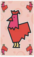 01.04.04 von Peter Zanow - Kleiner Gag am Rande: Die Titelseite der Spieleschachtel enthält ein Fehler - dort ist ein roter Hahn zu sehen, der "kikeriki" ruft, was er ja laut Spielregel gerade nicht macht, sondern er ist ja gerade für das "cocotaki" zuständig. |