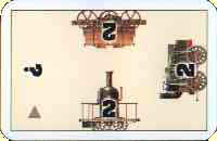 Bei der Seite mit der Zahl ohne Lokomotiven-Zuordnung kann der Spieler frei wählen, welche seine Lokomotive er bewegt und bei dem Fragezeichen ist die Zugweite durch die Anzahl der Heizerkarten bestimmt..