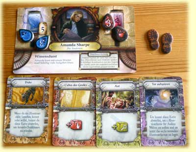 In meinen Testrunden haben wir übrigens relativ oft gewonnen - allerdings nur ein einziges Mal, indem wir genügend Ältere-Zeichen-Marker sammeln konnten. Ansonsten haben wir immer gesiegt, weil wir nach dem Erscheinen des Großen Alten nach und nach die Verderbenleiste wieder leerräumen konnten. Übel sieht's dann aus, wenn Azathot die drohende Gefahr darstellt - er siegt nämlich sofort, wenn er erwacht, was das Spiel besonders schwierig macht. Das Bestehen von Abenteuern (und damit letztendlich auch der Spielsieg) wird einfacher, wenn mehr Spieler dabei sind, weil den Ermittlern dann mehr Sondereigenschaften zur Verfügung stehen. Aus diesem Grund habe ich das Solospiel, für das ich in der Spielanleitung keine gesonderten Regeln gefunden habe, nicht ausprobiert.