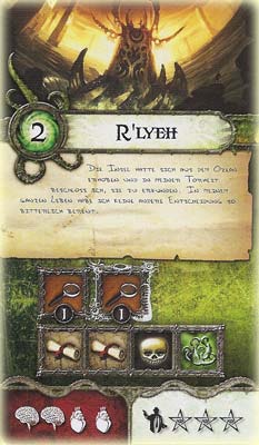 Manchmal erhält man jedoch auch Marker zum Zusammensetzen des Älteren Zeichens, von denen eine bestimmte Anzahl zum Gewinnen des Spiels notwendig ist. Zum Erwerb derselben hat man jedoch nicht endlos lange Zeit, denn ist die Karte des Großen Alten mit einer gewissen Anzahl an Verderbenmarkern belegt, hat das gemütliche Vor-Sich-Hinsammeln der Ältere-Zeichen-Marker ein Ende und es kommt sofort zum finalen Endkampf.