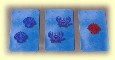 Es wurden die drei hier zu sehenden Karten aufgedeckt, beim Antippen sagt die erste: „Die Karte, die lügt, zeigt die Farbe Blau.“ Die zweite sagt: „Die Karte, die lügt, zeigt blaue Muscheln“. Und die dritte Karte schließlich sagt: „Die Karte, die lügt, zeigt zwei Tiere.“ Antwort klar?